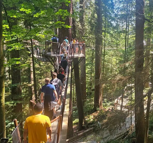 The tour also emphasizes Vancouver’s deep connection to nature. A visit to Stanley Park, one of the largest urban parks in North America, immerses travelers in towering cedars, scenic seawalls, and cultural totem poles. For those seeking adventure, the Capilano Suspension Bridge delivers a memorable experience suspended high above the Capilano River, complete with treetop walks and cliffside pathways.